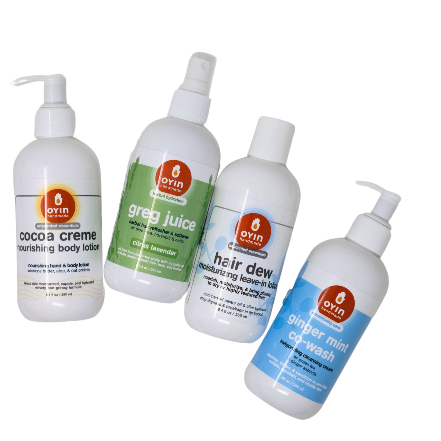 Greg Juice (8oz): Refresh and revive your hair with Greg Juice, our natural herbal leave-in spray. This hydrating mist detangles, conditions, and adds shine, making it ideal for daily use. Spray it on in the morning for a quick refresh or throughout the day to keep your hair looking its best.