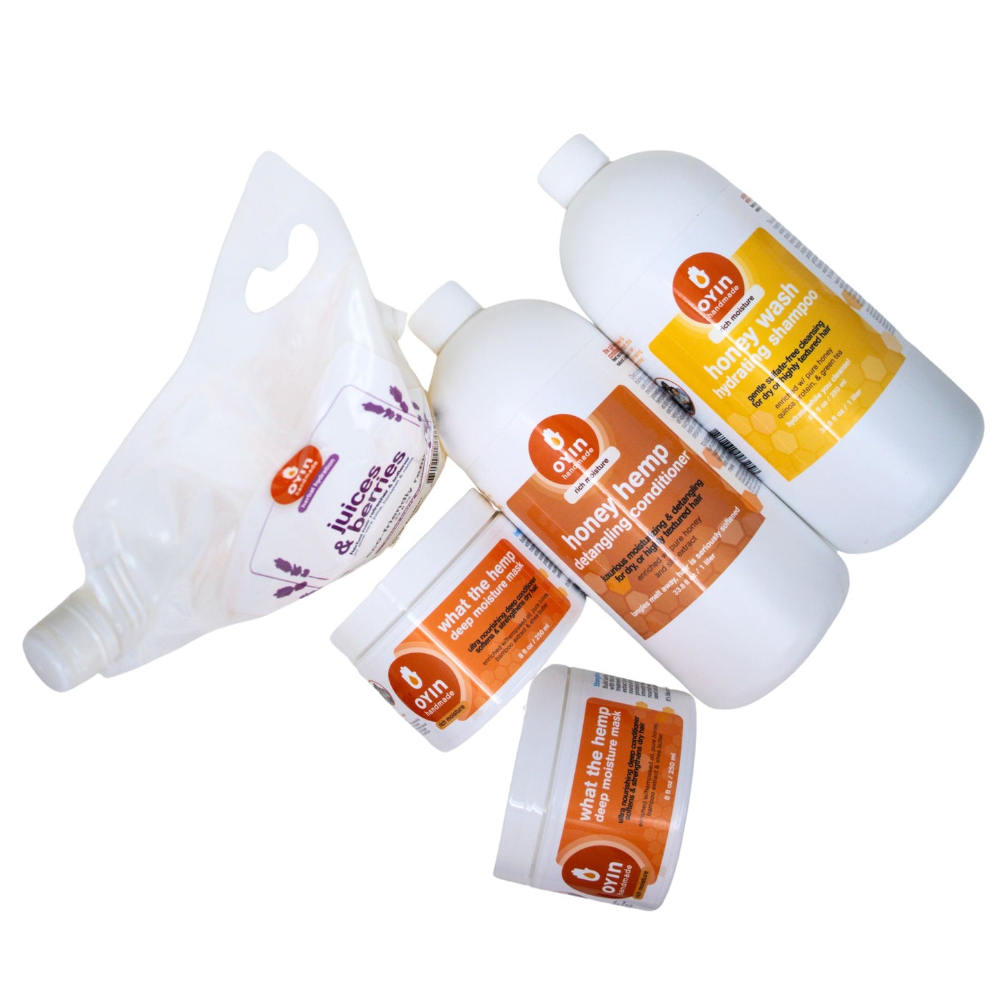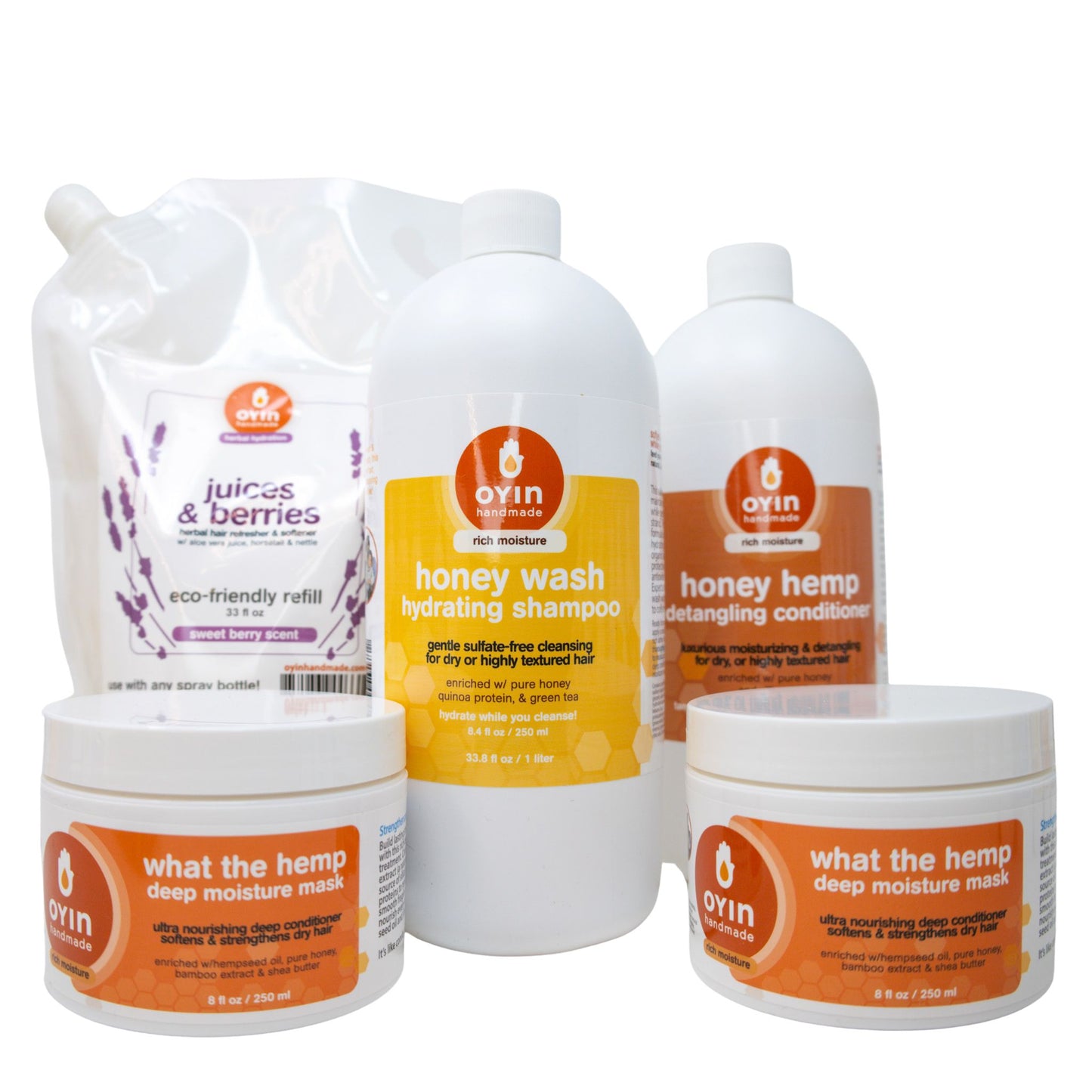 Honey Hemp Conditioner (33oz): Follow up with our Honey Hemp Conditioner, a deep-moisturizing formula that detangles and revitalizes your hair. Packed with pure honey, hempseed oil, and just a touch of silk protein, this conditioner delivers incredible softness and shine while replenishing your hair’s natural moisture.
