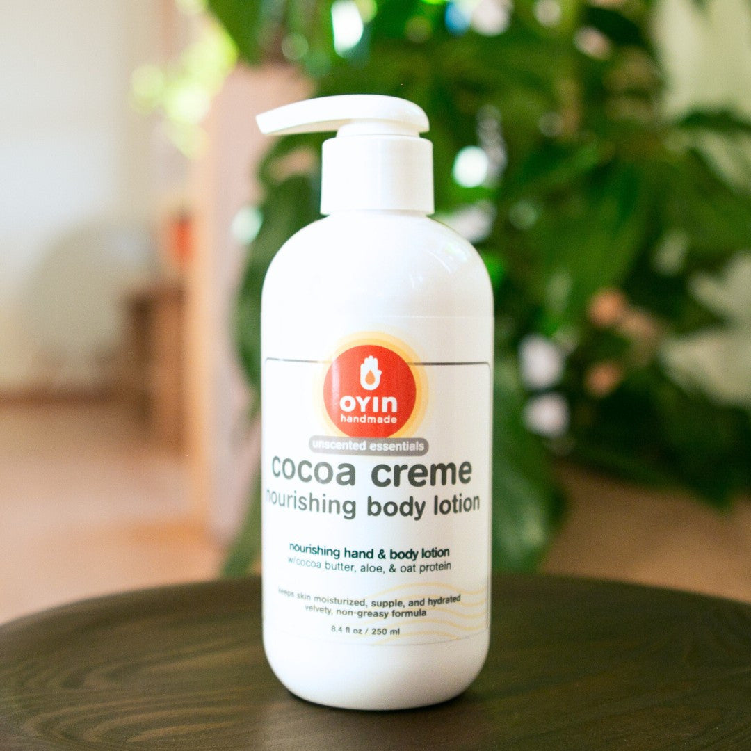 Cocoa Creme is an ultra-soft, ash-fighting formula made with cocoa butter, shea butter, oat protein, and olive oil to keep your skin moisturized, supple, and hydrated all day and night. Just one application of this velvety lotion eliminates dry skin and keeps you hydrated for hours.
