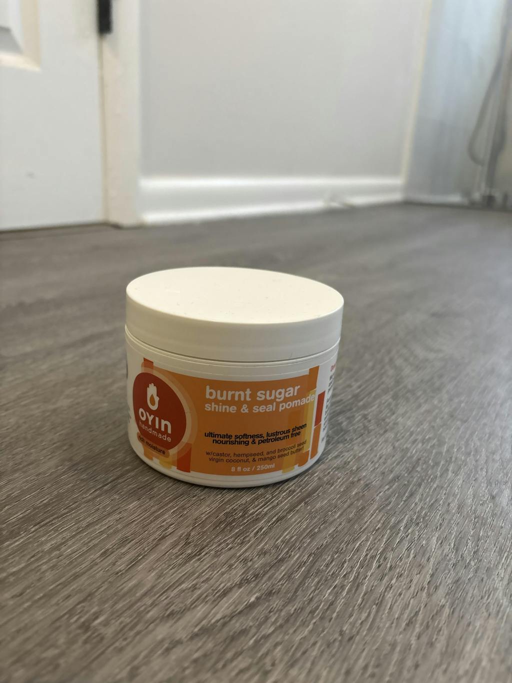 Don't. Do. Dry hair. Our sugar pomades are petroleum free, sheen-enhancing powerhouses to shine & seal your hair. They're the perfect final step over a liquid or cream moisturizer in your natural moisture retention regimen. Similar in texture to an old school 'hair grease,' this completely vegan blend of oils, butters, and veggie waxes acts as humectant and protectant for hair, increasing shine to a high glossy sheen, and locking in moisture.