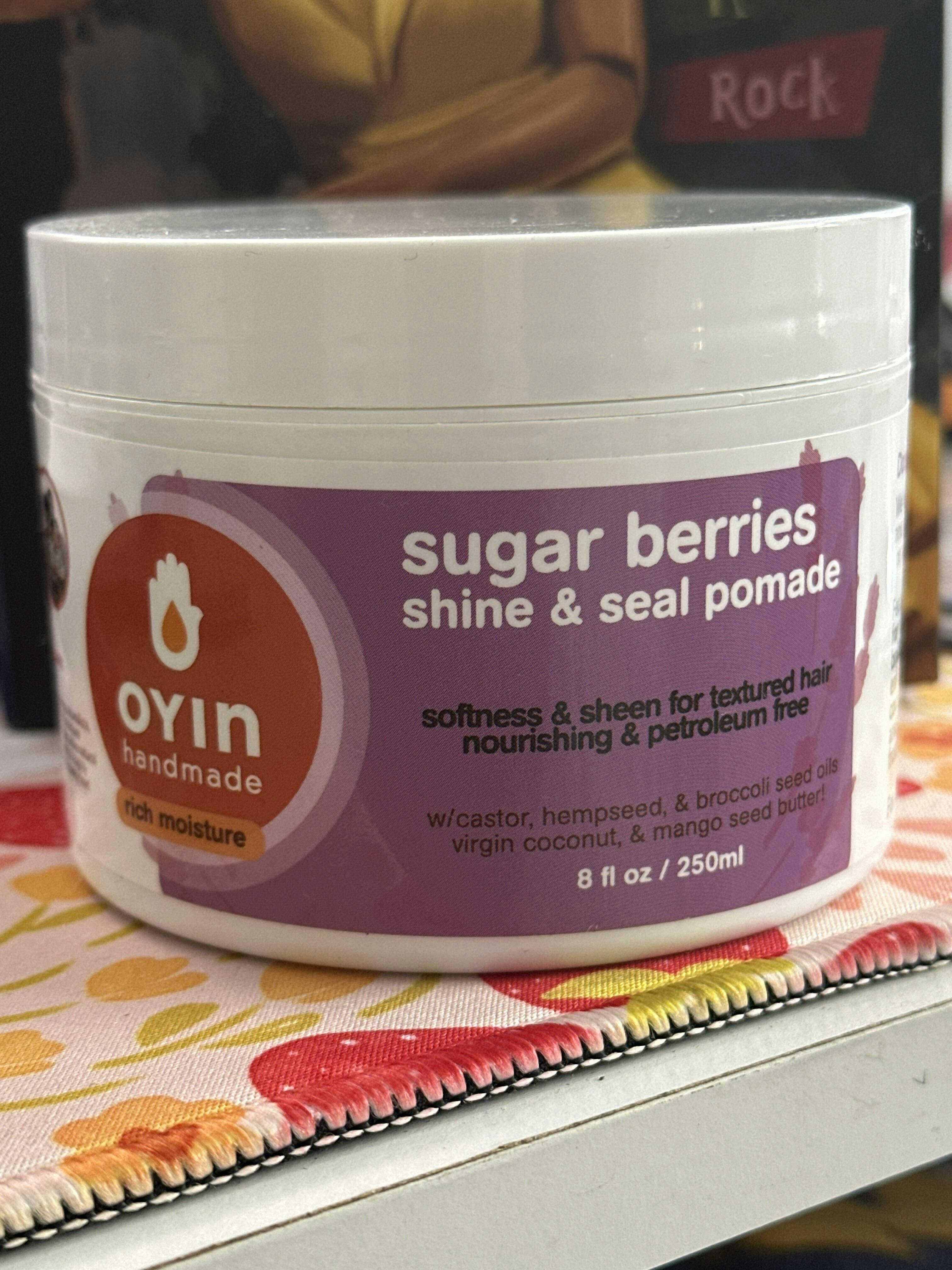 Our sugar pomades are petroleum-free, sheen-enhancing powerhouses that help shine & seal your hair. Formulated with castor, unrefined hempseed, and broccoli seed oil, our pomades are the perfect final step over a liquid or cream moisturizer in your natural moisture retention regimen. This completely vegan blend of oils, butters, and veggie waxes acts as humectant and protectant for hair, increasing shine to a high glossy sheen, locking in moisture.